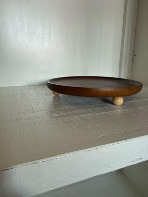 Garnen Coffee Table Tray, Decorative Tray Round, Kitchen Décor Wooden Tray, Acacia Wood Tray with Round Pedestal Stand for Candle Jewelry