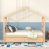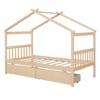 Twin Size Wooden House Bed with 2 Storage Drawers, Wood Montessori Daybed Frame with Roof for Kids Teens, Natural