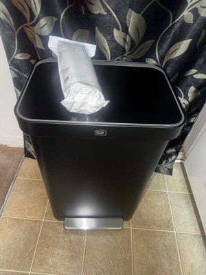 [This review was collected as part of a promotion.] Overall, this is a great trash can. The press to open is fluid, the design makes it easy to clean, and the size is great for a week’s worth of trash for a household of 4. I took off one star as this size requires a special trash bag, which I don’t mind for the size, but a bit inconvenient.