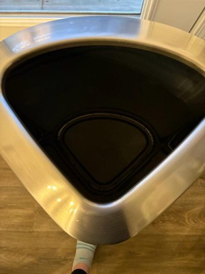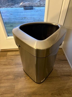 [This review was collected as part of a promotion.] The perfect trash can exists and this is it. It is huge and deep, I’m going to have to get new trash bags, it’s a perfect shape to fit in corners and use. It is very easy to use, there was no assembly needed, it came just how you use it, no foul smell when unboxing. My only slight complaint is the no lid cause if you use it in a kitchen you need a lid but I think it’s perfect for recycles, paper and office trash. I like the shape, it is very sturdy and will not tilt of fall over, you can easy throw things in there and keep moving especially if it’s busy. The stainless steel omggg too beauty, it was built for durability and this is a great bin.