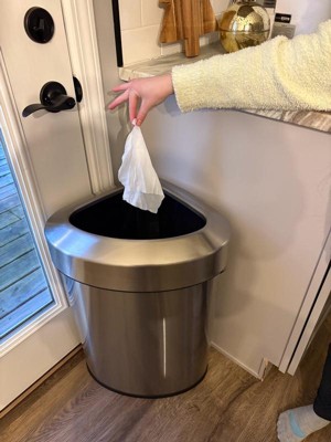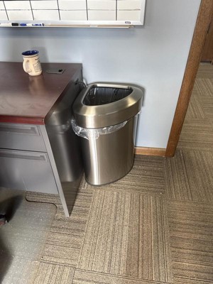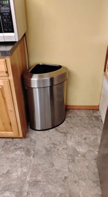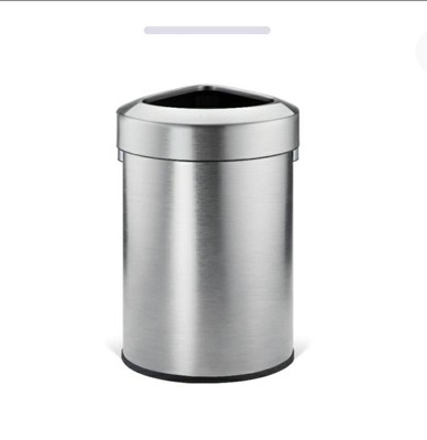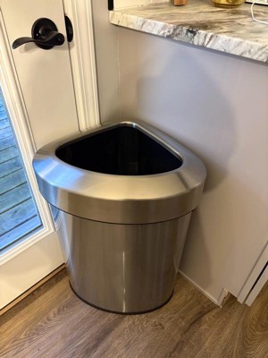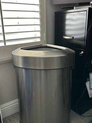 [This review was collected as part of a promotion.] This Home Zone Living 16-gallon open-top trash can looks modern and fits perfectly into corners, saving valuable space. The stainless steel finish is easy to clean, fingerprint-resistant, and durable for everyday use. It holds plenty of trash while maintaining a sleek, professional appearance. Perfect for offices, kitchens, and high-traffic areas.