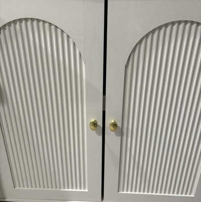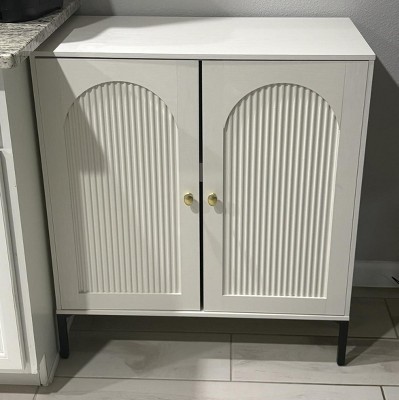 Keeping the price point in mind, I am happy with purchase. It comes with a lot of hardware but it was pretty simple to put together. The overall look is very clean and nice but there are some details that detract from it, but again being realistic for the price point it’s still good. There is a substantial gap between the doors and the arch isn’t as smooth as I would like. Overall it stores a lot, is the height that I wanted, and looks nice too.