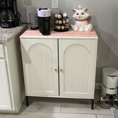 Sideboard Buffet Cabinet with Storage, 61.75" W Modern Arched Cabinet with Adjustable Shelves, Wooden Coffee Bar for Living Dining Room, White