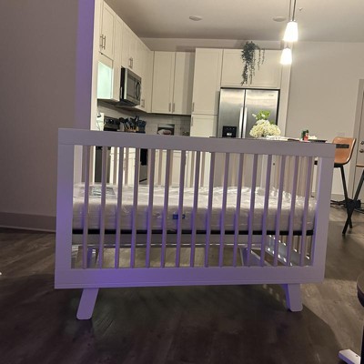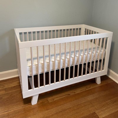 Beautiful minimalist design. This crib fits in our (very small) nursery perfectly, and was easy to set up. Great quality wood, and we loved all the color options.