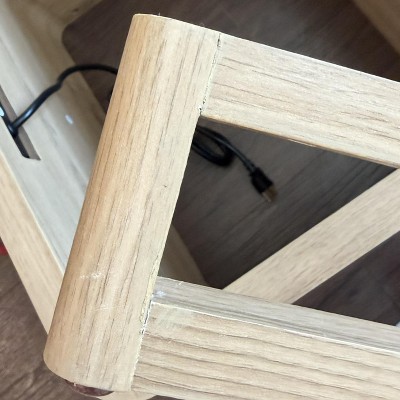 End Table Set of 2 with Charging Station, 23.6" Wood Nightstand with Open Shelf Storage, Modern Side Table for Living Room ,Bedroom, Natural Oak