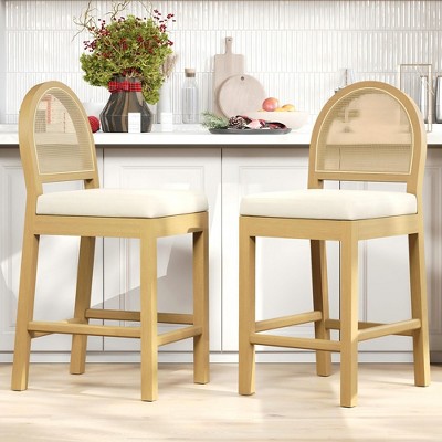 Bar Stools Set of 4, 24" Counter Height Bar Chairs with Backrest & Footrest - Modern Upholstered Round Seat Stools for Kitchen Island, Dining, Pub