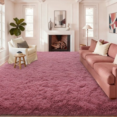Soft Shag Area Rug 6x9 for Living Room or Bedroom, Fluffy Non-Slip Plush Carpet, Cozy Fuzzy Indoor Rug BeanPastePink 9x12 ft