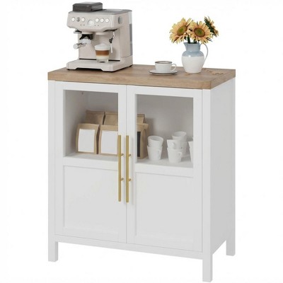 Modern Sideboard Cabinet with Fluted Glass Doors, 36'' Storage Cabinet with Adjustable Shelf, Wooden Cabinet, Accent Cabinet for Kitchen, Living Room