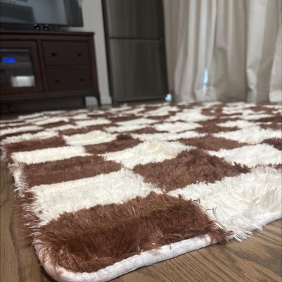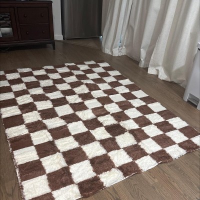 5x7 Feet Checkered Area Rugs For Living Room, Black Modern Super Soft Fluffy Rugs for Bedroom Home Aesthetic Decor white camel 72x108 inch