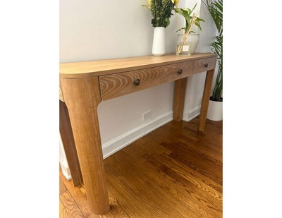 Console Table Entryway Table Sofa Side Table Rustic Accent Table with 3 Drawer&Curved Corners for Safety, Black - ModernLuxe