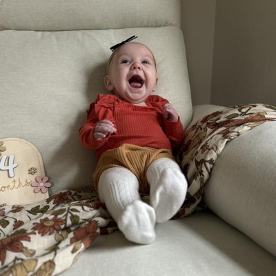 I purchased about a year ago and never write reviews, but this chair! I had to! It is literally the most comfortable chair I’ve ever owned/sat in. You just melt right into it. I did a ton of research and shopping around before settling on this one; you can’t beat it for the price! It truly the perfect nursery glider because it reclines as well. The fabric is so soft and I love the color. My baby just turned 11 months and I’m writing this as I rock her to sleep in our favorite spot.