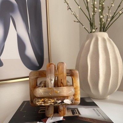 Marble Knot Sculpture for Shelf Accents, Room Styling, Office Design - Modern Statues Living Room Decor or Coffee Table Display, Home Decor - 6", Tan