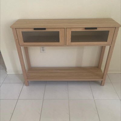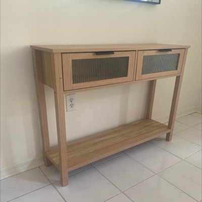 COZONY 43" Modern Wood Console Table with 2 Glass Drawers, Narrow Entryway Table with Spacious Storage for Living Room, Hallway, Foyer, Kitchen