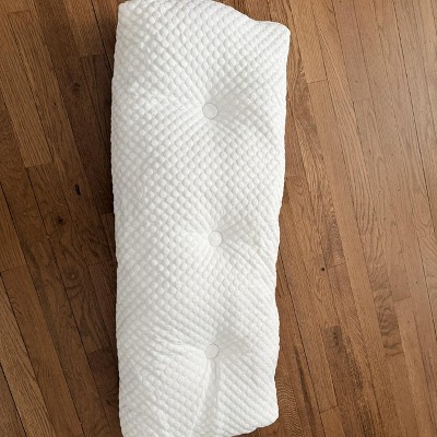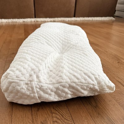 The pillow is much flimsier than displayed in picture. Cannot stand up on its own. Not worth the money.