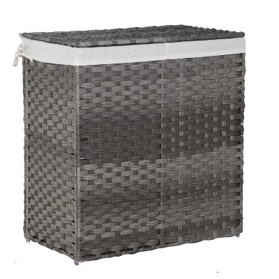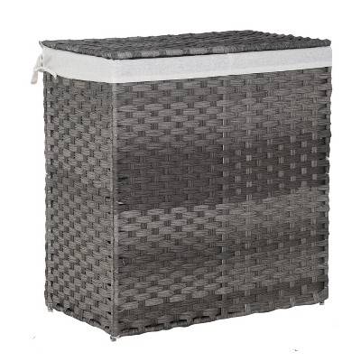 Greenstell Hand-woven, compartmentalized rattan laundry basket with 2 removable inner lining bags, lid, and handle, foldable
