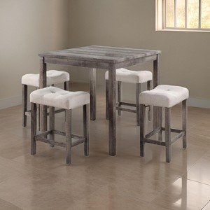 Royal Hampton 5 Piece Counter Height Table Set with 4 Stools, Beige Fabric, Gray Wood