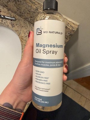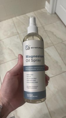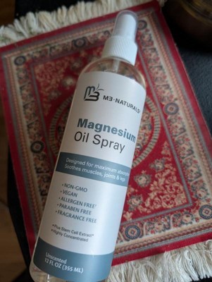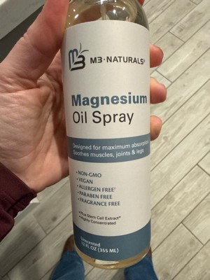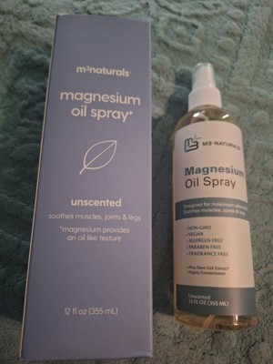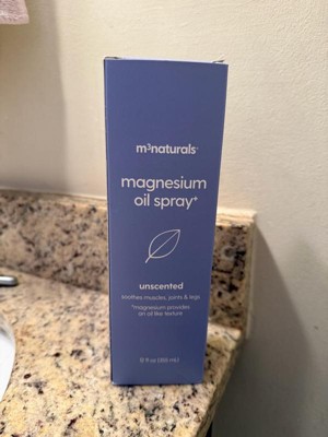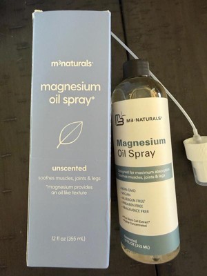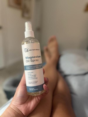 [This review was collected as part of a promotion.] Received this product complimentary from Influenster for my honest review. The M3 Magnesium oil spray is an interesting product. I used it to spray on my feet and some of my joints that were achy. I think it helped some. I think possibly this product might help more if used more often. It is a light unscented oil. It is to be massaged in. It absorbs pretty well. It leaves my skin feeling tighter for some reason. There is a slight residue but it's not a problem. I will keep using it. Try it, it may help.