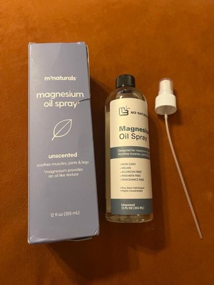 Thank you for your detailed review, Judith! We’re pleased that our Unscented Magnesium Oil Spray felt lightweight and easy to apply to areas like feet and joints. The fragrance-free magnesium body spray is formulated to absorb comfortably while supporting a calming self-care routine. Your honest feedback about the texture and experience is truly appreciated! Best, Shiela M3 Naturals Support