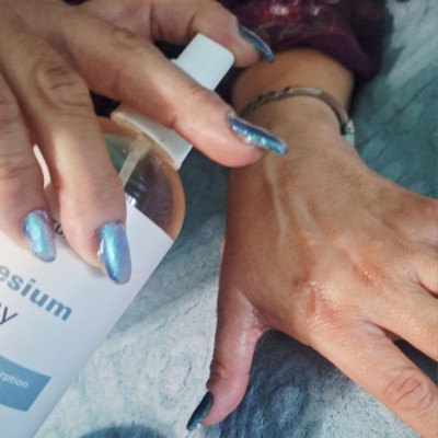 [This review was collected as part of a promotion.] This is my first time to try Magnesium by Oil spray. I prayed 4 times at bottom of my feet and massage until it fully absorbed. There is no oil on feet but I still felt a little of greasy. It is odorless. My hand got dried because of oil. In general, I feel no discomfort, no irritation. I don’t really sure because of oil, my sleep seems deeply than before. If you are lazy of pills, try this Magnesium oil spray.
