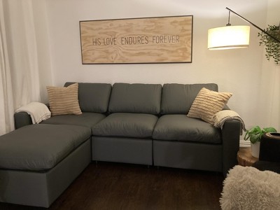 I bought the Dyonery Cat Paw leather sofa from Target for $650. That is an amazing price for this sofa! The faux leather is buttery smooth and feels soft yet sturdy. I have had the sofa for about 2 weeks with no scratches or damage to it. We do have a small dog. This sofa is a beautiful color and has very comfortable, fluffy seats. It was also easy to put together. It looks like it will be easy to wipe clean although I haven't seen any reason to try to clean it yet. The only downside to this couch is that the back is a little too low to support the back cushions, so the back cushions keep sliding down a bit into more of an angle than I would like. However, for this price and with everything else about it feeling heavy duty and well made, I went ahead and gave it 5 stars. Most faux leather sofas this size are twice the price. If it doesn't hold up well to wear and tear I might come back and change the review later. But for now, for the price and the sturdiness etc, I am giving it 5 stars! I'm super happy with it!