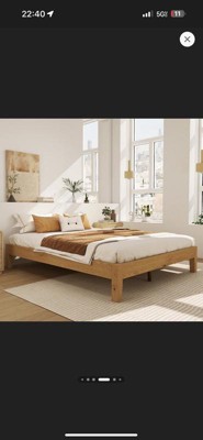 Bestier Queen Size Wood Bed Frame without Headboard, Platform Bed with Thicken Slats Connected, Pinewood Bed for Bedroom,No Box Spring Needed, Honey