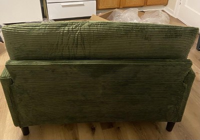 It's a nice couch! Delivery was super fast and it was super easy to assemble (like an hour or so, definitely no tools needed as well). I've had it for about a month now and I think it's a pretty solid, comfortable couch. It's a little firm, so definitely not for the super plushie couch lovers, though I do think that the nice courdoroy material makes up for it. I think it's a great couch for folks who have a small space, or want a decent sized loveseat to complement their space.