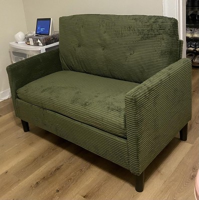 50" Loveseat Sofa, Green Corduroy Small Couch for Small Spaces Bedroom, Comfy Mini Love Seat with Deep Seat, Tool-Free Assembly