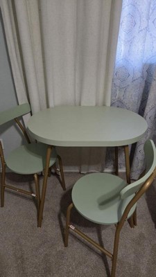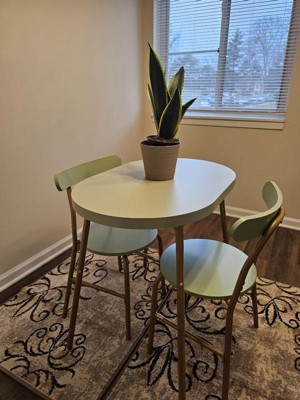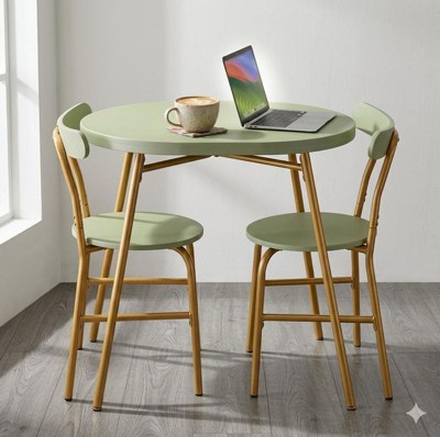 [This review was collected as part of a promotion.] I received this item free for my honest review Living in a small apartment, I am always in need of space saving options and multi purpose furniture. This is a great little table that works well as a dining table for two of course, but could also be put to use in other ways. It's stylish aesthetic of fern green and gold lends itself to a calming but productive mindset for an office desk or even a small crafting desk.
