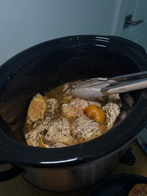 [This review was collected as part of a promotion.] This slow cooker is simple to use and heats well. The stainless steel base is lightweight and sturdy with a single nob that turns to Low, High, Warm and Off. It comes with a glass cover that fits well with the ceramic base. The black ceramic base is heavy, with a glossy finish that makes it easy to clean by hand or in the dishwasher. I used a plastic crockpot liner also and was pleased to see that it worked well without melting or leaking. The ceramic heated evenly and my food cooked well without burning. I've had trouble with slow cookers in the past cooking too fast and drying out my chicken. So I made chicken noodle soup, low and slow, and found the chicken cooked perfectly juicy. Then I tried a fast cherry dump cake on high and it turned out very yummy with the cake batter cooked golden on top. I've also tried a favorite meat and cheese spaghetti dish cooked low early in the day and then used the warm setting to keep it the perfect temperature for dinnertime. It has a 6 quart capacity, which is great for feeding a hungry family of 4-8. There is no digital display so it will stay on the setting that it's cooking on until you turn it off. I would recommend setting a timer next to it so you don't overcook anything. Overall, this is a great staple slow cooker to have for every day family cooking. I am reviewing this product in exchange for my honest opinion.