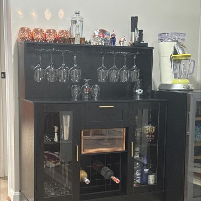 Besiost Kitchen Wine Bar Cabinet with Wine Rack and Door, Coffee Bar Buffet Table with Storage Drawer, Black