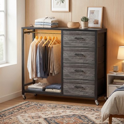 Besiost Farmhouse Storage Dresser Set of 2 , Night Stands with Charging Station and Drawer, Gray Oak