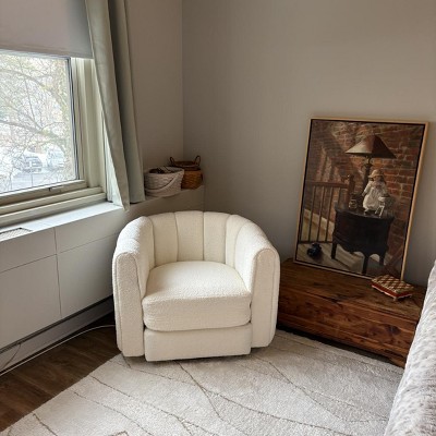 Plush Cloud Swivel Chair, 360° Rotating Pumpkin Barrel Accent Armchair with Enlarged Base, Beige, 1-Pack Option, Beige
