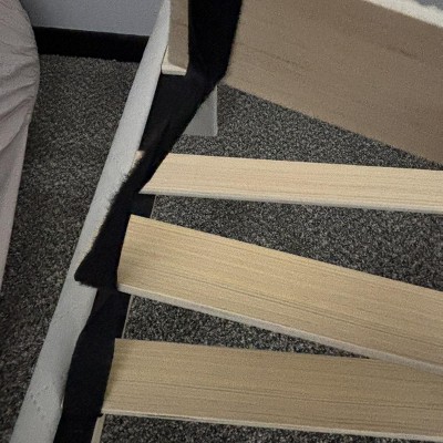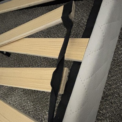 Pretty easy to put together. Unfortunately 2 boards came with Velcro twisted and stapled to the boards that way. Also the headboard is not as big as shown in the picture. I have a 12inch mattress and can not raise the headboard anymore.