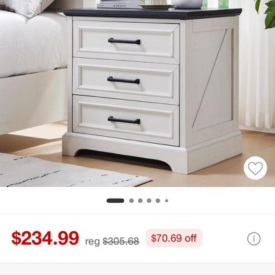 1Pcs Modern Farmhouse Nightstand with 3 Large Drawers, Rustic 24.8 Inch Wide End Side Table Retro Wood Nightstand for Living Room Bedroom, White
