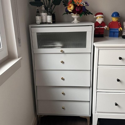 Costway 4 Drawer Dresser 44.5" Tall Dresser Chest of Drawers w/Flip-up Fluted Glass Door