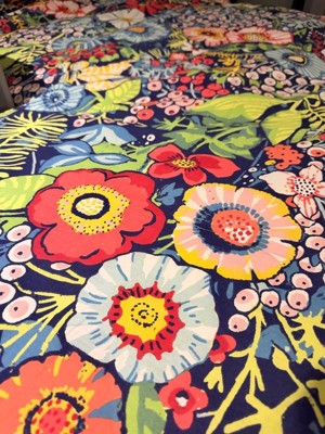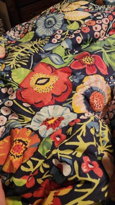 The Levtex Home Night Garden Comforter Set brings bold style to your bedroom with a lush floral design on the front, reversing to a coordinating geometric print for versatility. The set includes a comforter and shams. Made with a cotton front and back and filled with soft polyester, this set provides cozy warmth and lasting comfort. Machine washable.