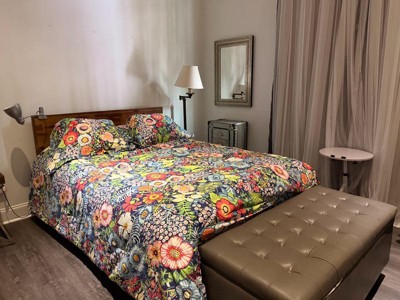 [This review was collected as part of a promotion.] This comforter set is perfect for adding life, fun, and color to our guest bedroom. I love the fit of the comforter. It is big enough to evenly cover my bed with enough material to be long enough on the sides to look cozy and still polished. I love how the flip side has a complimentary color and pattern that you can use to give your room an easy change up for winter seasons. Overall, this is a great find and looks fantastic in person. It makes the room pop and it feels like the perfect addition to pull it all together as the finishing touches to the perfect guest room.