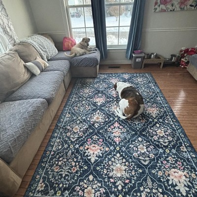 Modern Area Rug Elegant Floral Durable Stain-Resistant Fabric Washable Waterproof Perfect Rug for Living Room Bedroom - 1 of 4
