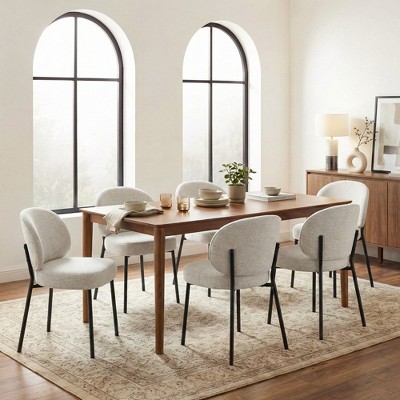Acekool Set of 6 Upholstered Dining Chairs, Modern Fabric Kitchen Side Chairs with Thick Cushions & Wood Legs, Beige