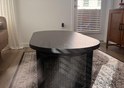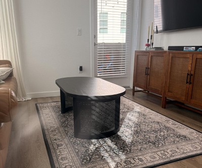 The 48" Oval Coffee Table blends clean mid-century lines with natural rattan-inspired detail to create a modern yet inviting centerpiece for any living space. Designed with sculptural pedestal legs wrapped in cane-style paneling, this table delivers warmth and texture while maintaining a light, contemporary silhouette suited for living rooms, apartments, or office lounge areas. The spacious oval-rectangle tabletop is crafted from durable engineered wood, finished in a refined wood veneer available in Natural Oak or Matte Black. Its smooth surface offers ample room for drinks, décor accents, books, or serving trays without overwhelming your seating arrangement. The single-tier design keeps the look clean and uncluttered, ideal for interiors where simplicity and elegance take priority. Built on a sturdy double pedestal base, the table provides excellent support and stability for everyday use. The rattan-style wrapped legs add breathable visual interest while maintaining structural strength, blending organic texture with modern form. Assembly is quick and straightforward with all hardware and instructions included, and maintenance is easy with simple wipe-clean care. Whether styled in a Mid-Century Modern, Japandi, or coastal-inspired home, this coffee table brings timeless character, practical functionality, and natural warmth to your living space.