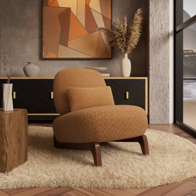 TUYOHW Accent Chair,Armless Chairs with Curved Backrest,Wooden Legs,Mushroom Fur Fabric Upholstered Lounge Chair for Living Room,Bedroom,Balcony