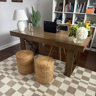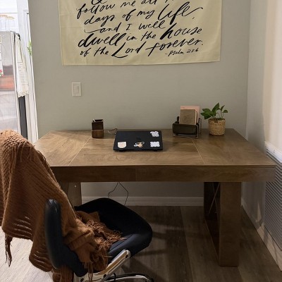 There was only one review when I purchased this desk and it was a good one so I pulled the trigger. I searched for desks for weeks and took a chance on this one. So glad i did! I cannot believe how sturdy and beautiful this desk and the price- YOU CANNOT BEAT IT! It is slightly darker than it appears in the pictures, but still beautiful. Don’t sleep on this incredible desk.