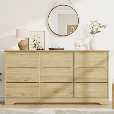 Acekool Rounded Corner Wide Dresser, 7 Drawer Storage Cabinet, Bedroom Living Room, Natural Wood