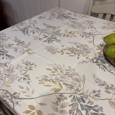 Product Name: Printed Waterproof Fabric Tablecloths, Easy Care Dining Table Covers by Sweet Home Collection - 60" Round - Wynona Leaf
