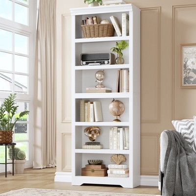 Acekool 70" Farmhouse Bookcase with Drawers, Deep Wood Bookshelf Storage Cabinet for Living Room, Brown Red