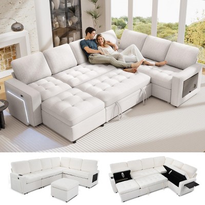 L-Shaped Modular Sectional Sofa, Deep Seated Cloud Couch, Modern Beige Corduroy Couch with Chaise, Convertible Sofa Lounge