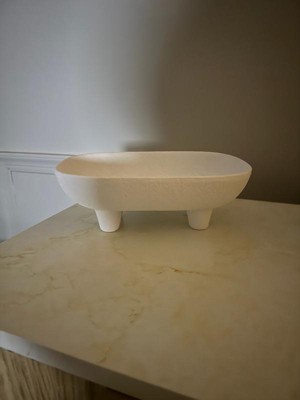 Decorative Ceramic Rounded Rectangle Bowl for Coffee Table - Minimalist Centerpiece Table Decoration or Kitchen Counter - 3.5", White