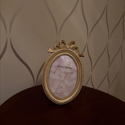 Decorative Oval Photo Frame with Elegant Bow Detail - Vintage Style Home Decor Ideal for Living Room, Bedroom, and Office Desk - 9", Gold