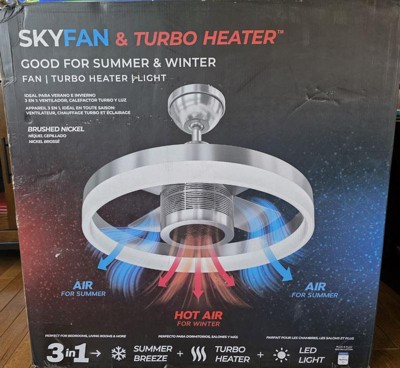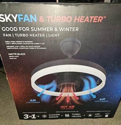 [This review was collected as part of a promotion.] The Skyx sky fan turbo heater and fan is much bigger than I expected which is a nice surprise. It does a great job producing a nice strong breeze and is as great at warming the room up. The led light is nice and bright lighting up the whole room.
