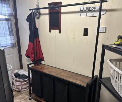 Much nicer than I was expecting! It's actually beautiful! I love that the laundry sorters are tucked away so that guests don't have to see our dirty laundry. Love the top flat surface to fold clothes on or keep a laundry basket on. Good purchase!!! Great price!! Didn't take hubby long to put it together! No issues!